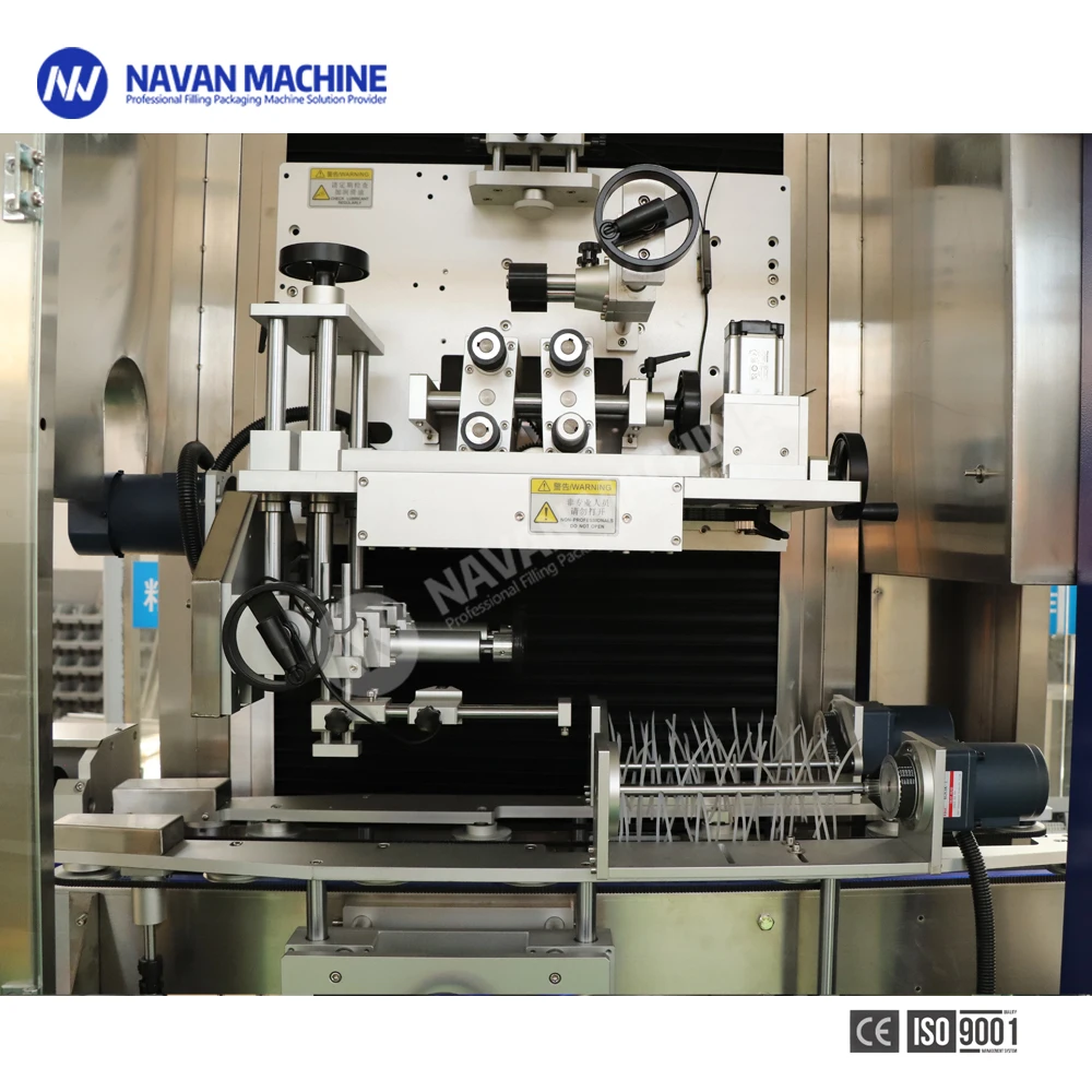 Questo sistema di etichettatura ad alta prestazione per bottiglie in PET combina automazione precisa con un'applicazione efficiente di maniche retrattili per una decorazione del prodotto senza soluzioni di continuità. La macchina è dotata di un tunnel retrattile integrato e di un generatore a vapore, garantendo un'applicazione di etichette uniforme e senza grinze su varie dimensioni di bottiglia. Ideale per linee di imballaggio di bevande, cosmetici e farmaceutici, questo equipaggiamento gestisce contenitori rotondi e modellati con la stessa precisione. Il meccanismo avanzato di alimentazione delle maniche garantisce una posizionamento preciso delle etichette, mentre il tunnel retrattile a vapore fornisce una distribuzione uniforme del calore per un'ottimale conformità della manica. Con comandi intuitivi, cambio rapido di formato e velocità di produzione fino a 200 bottiglie al minuto, questa soluzione di etichettatura massimizza l'efficienza operativa mantenendo una qualità di finitura superiore. Costruito con componenti industriali di grado elevato, il sistema offre prestazioni affidabili e requisiti di manutenzione bassi, rendendolo una scelta ideale per impianti di produzione medio-alta.