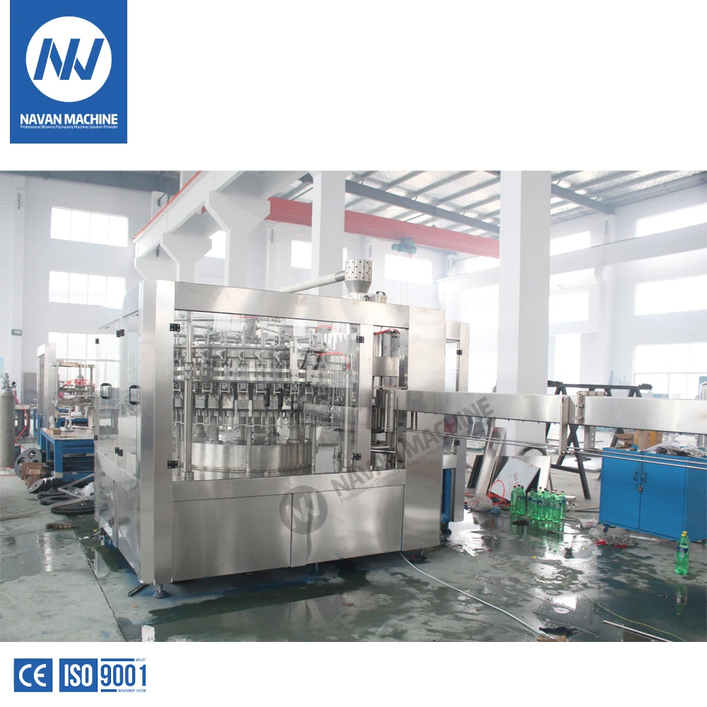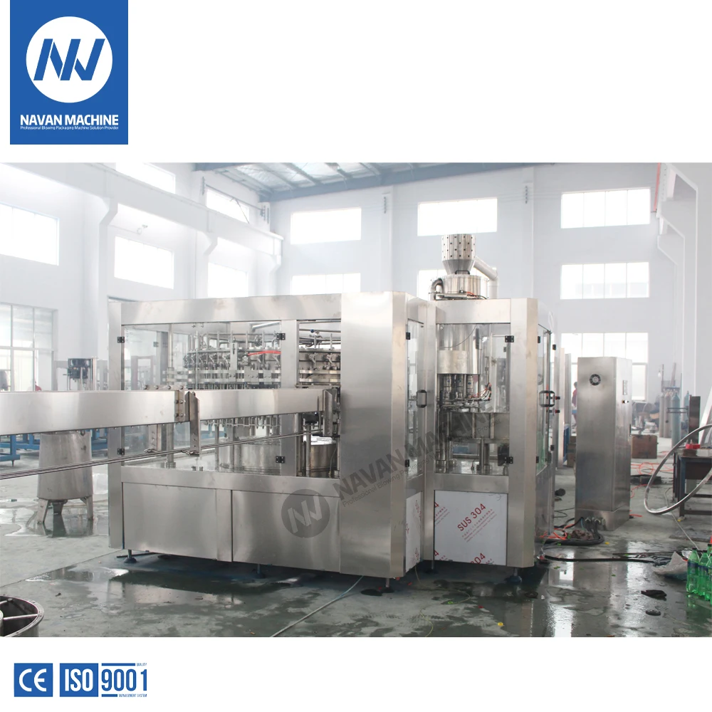 The NAVAN 1-liter Bottle Carbonated Beverage Filling Machine is a high-performance production line designed for efficient bottling of carbonated drinks. This automated system handles everything from bottle rinsing to filling and capping, ensuring consistent quality and optimal carbonation levels. Perfect for small to medium-sized beverage manufacturers, the machine processes 1-liter bottles with precision and reliability. Its stainless steel construction meets food-grade standards, while the advanced PLC control system enables easy operation and monitoring. The production line features adjustable filling parameters to accommodate different carbonation levels and beverage types. With enhanced safety features and low maintenance requirements, this equipment guarantees stable performance and minimal downtime. Suitable for various carbonated drinks including sodas, sparkling water, and energy drinks, the NAVAN filling machine delivers industry-standard output while maintaining product quality.